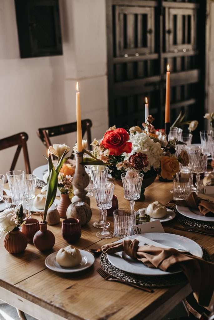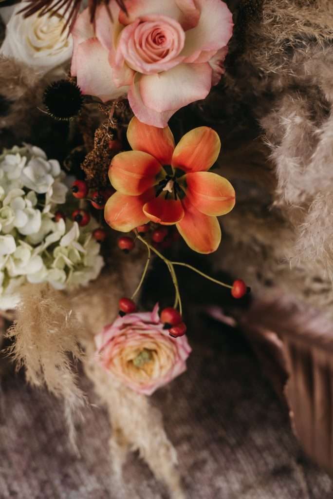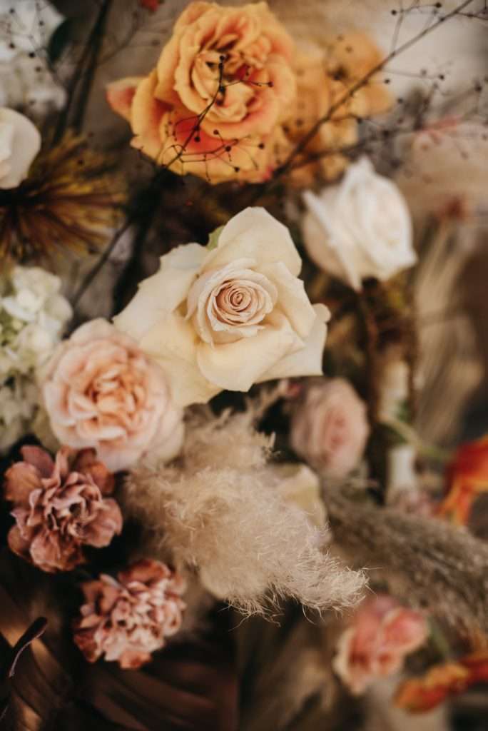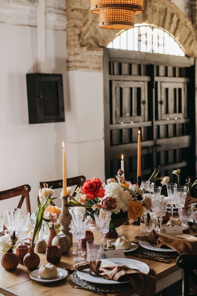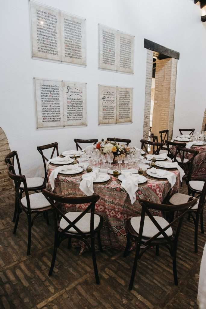 Elena, una investigadora sevillana, y Obed, un chef mexicano, ambos viviendo en Alemania, soñaron con una boda que fusionara lo mejor de ambas culturas. Fue un honor hacer realidad su visión, creando un ambiente cálido y festivo que reflejara la esencia de México y la cultura sevillana. Las flores de tonos cálidos—naranja, rojo y amarillo—se combinaron con cactus decorativos, aportando ese toque mexicano, mientras que los colores terracota, marrón y blanco se integraron perfectamente con la decoración típica de Sevilla.