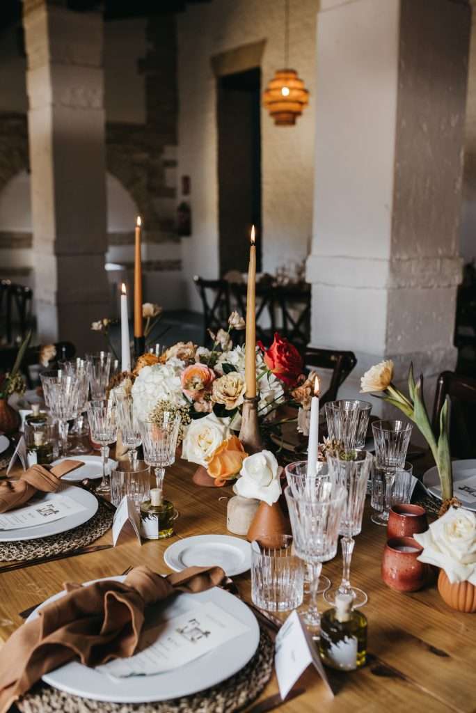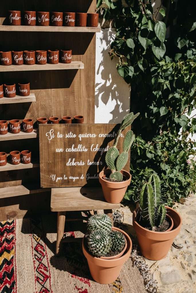 Desde las flores vibrantes y los cactus hasta las botellitas de aceite de oliva como recuerdos, cada elemento de esta boda fue una perfecta fusión de las raíces mexicanas y sevillanas de los novios. Fue un honor ser parte de este día único y crear una experiencia tan personalizada y memorable para ellos.
