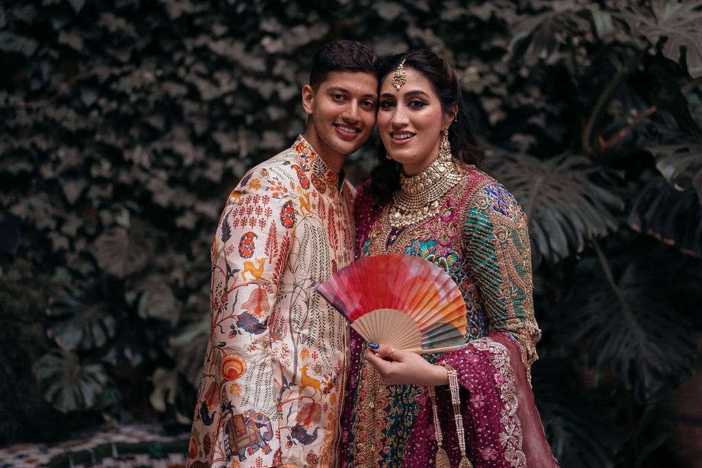 La ceremonia se celebró en el majestuoso Casa Guardiola, un palacio histórico que nos permitió mezclar la rica tradición pakistaní con el estilo sevillano. Desde la decoración llena de color, con copas, velas y servilletas en múltiples tonos, hasta la importancia de las flores, cada detalle fue un homenaje a sus raíces.