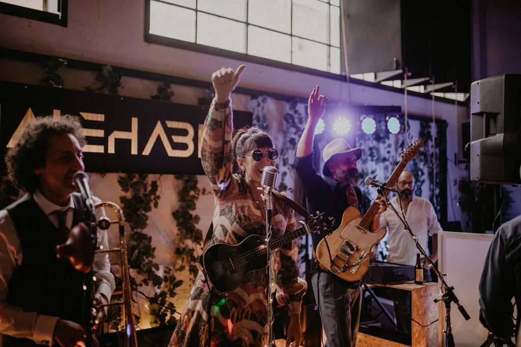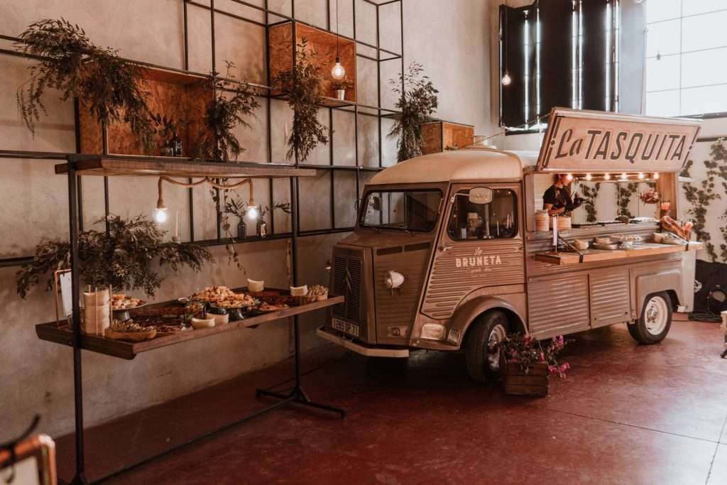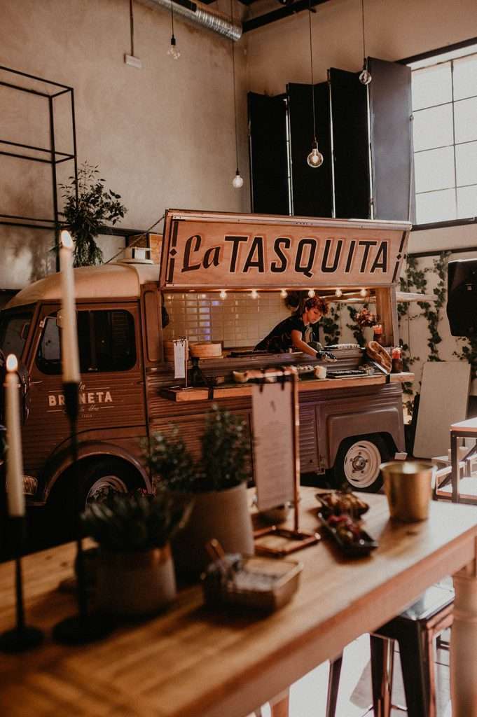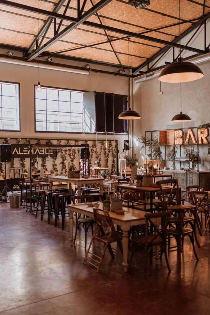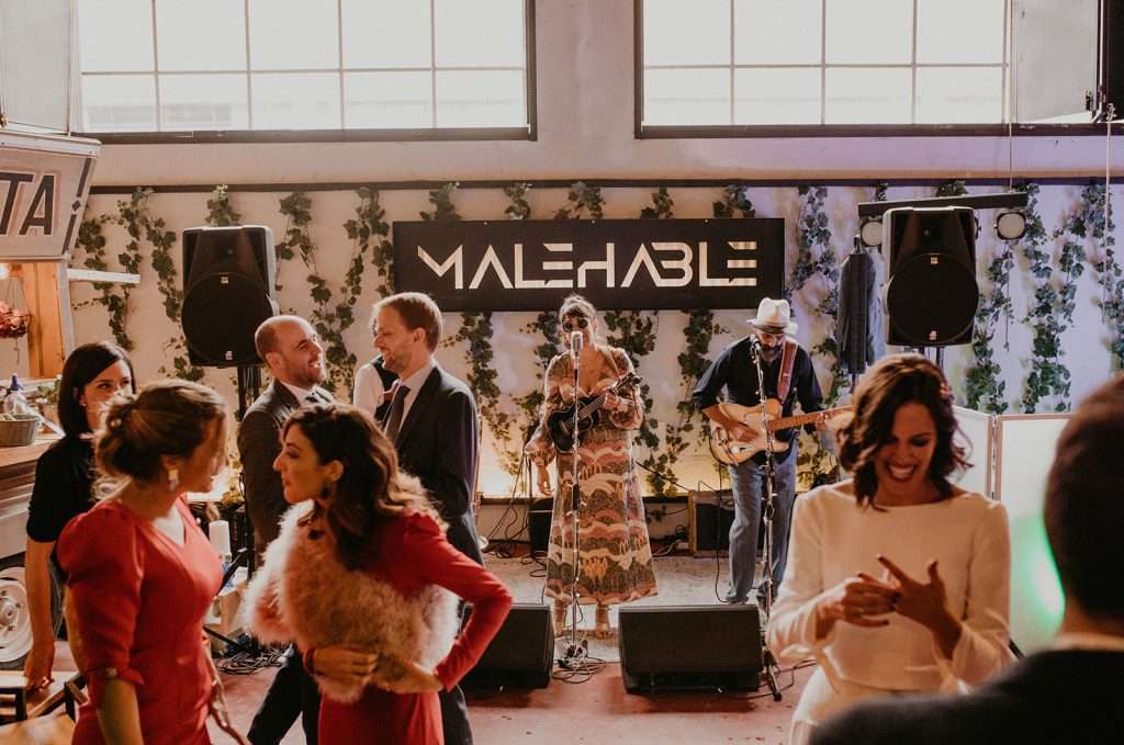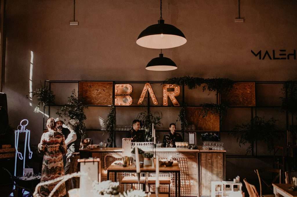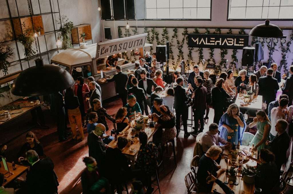 Tras la ceremonia nos desplazamos todos para comenzar el almuerzo- cóctel de mano de Tu Otra Cocina en Malehable, a escasos metros. Un espacio industrial con carácter que decoramos con mucho mimo.
