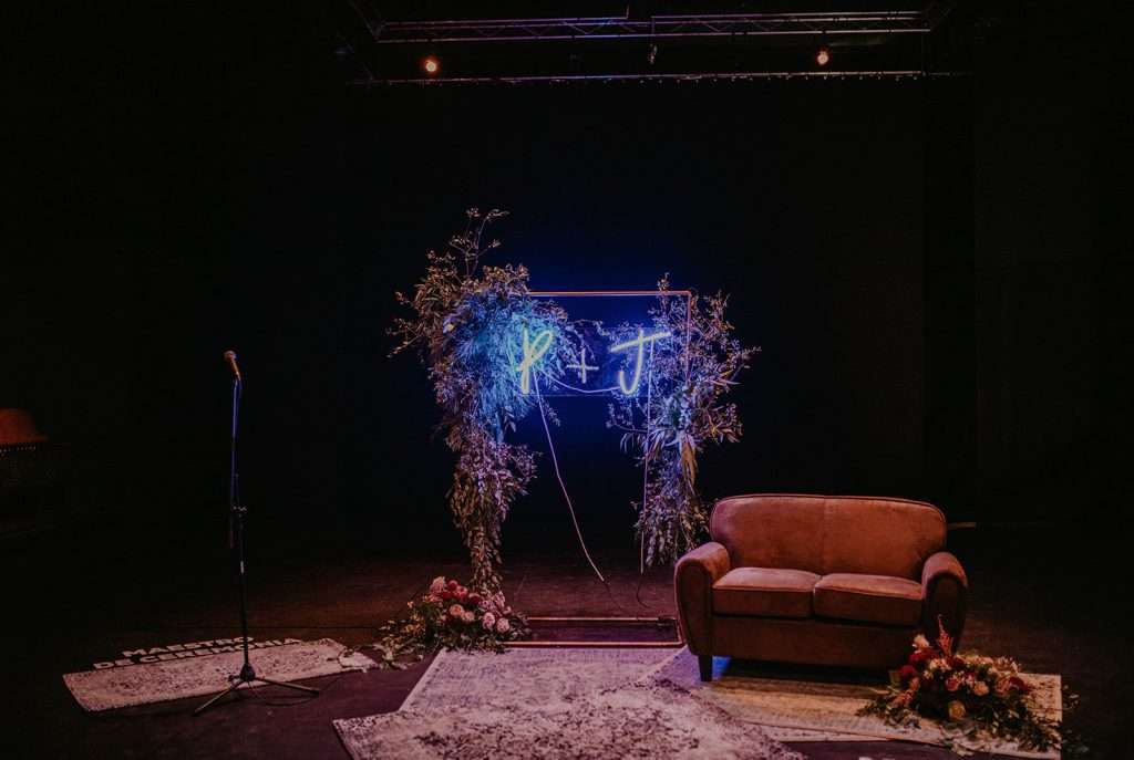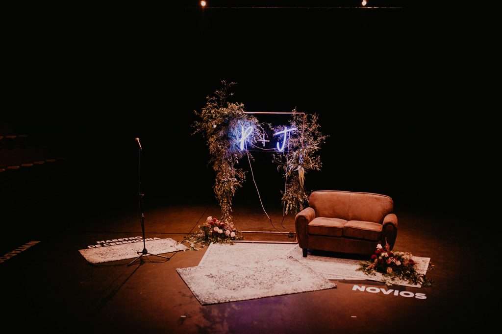 Encontrado el espacio para la celebración nos surgió la duda, ¿y la ceremonia? Estando en Malehable echamos un vistazo calle arriba y calle abajo y le consulté directamente al dueño del espacio, ¿conoces algún sitio cerca para celebrar una ceremonia? Su respuesta es: ¡Si os queréis casar en un teatro! A 5 metros, no más, se encontraba el Teatro Távora, ¿podría ser mas emocionante que tener como ceremonia una obra teatral? El parche de oro llego cuando Juanma me dijo que su hermano, una de las personas mas importantes en su vida para el, era actor, iba a ser sin duda el maestro de ceremonias pero si además lo hacia en un teatro. Era un regalo muy especial para él.